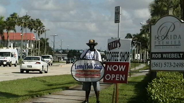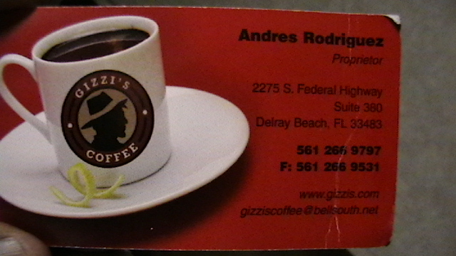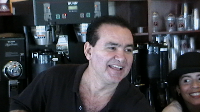 a first class coffee house on US 1 in Delray Beach. His promotion includes another good idea, Andres Andres and Fernanda were very busy and he greet customers by name. One lady walked in with the loud salutation "Andres" which was answered by the warm big smile he has. The picture of him interacting with his customer I thought was typical.