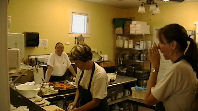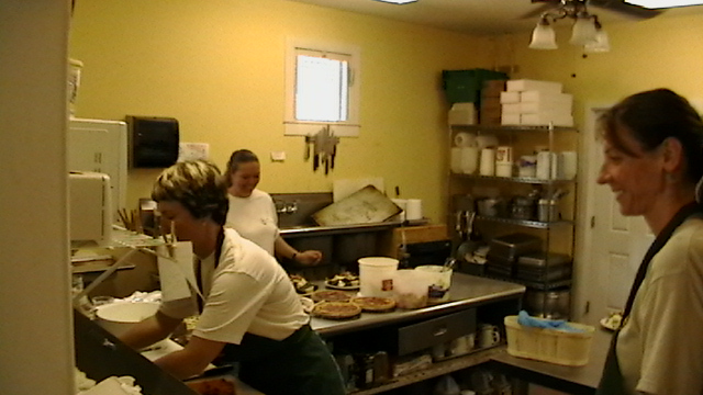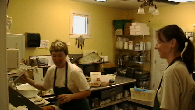 welcome them warmly. Here are the people: Who would expect to have a dessert tray served at a Deli, as they call themselves. Not me, and it was a blowout success. I'm moved to add this as another key to success. New stuff, surprises and unexpected events and an ingredient of success. The FoodThe food was scrumptious, a word I have never used before. I am a coffee fanatic, but I do like my food. I can tell you the sandwiches I had was terrific, and it looked good. Red Skinned Potato Salad is enough to get me to go back again and again. It was good. Cathy had Chicken Fajita Salad and it was the Chicken Fafita that filled the room with just unbelievable aroma's. It was finished in no time at all. Then there was my Peach Cobbler, which was just perfect, not too sweet, but sweet. I could only see the other folks get served and all the meals looked good. As an aside, the house was almost 100% full in a very small town. The PlaceIt was well thought out and well decorated. The paint selection and paint job were expert, and this I know since by Grandfather Pop Johnson was a painter and paper hanger by trade and he taught me how to paint and evaluate my work. He also taught me how to 'Walk' a 40 foot wood (meaning heavy) extension ladder. I wish he were still with us as he was a great person who took a special interest in me. Back to the place. Expose the kitchen to the customers assuring them that the place is clean and well organized. Only do this if your place, like Creative Catering and Deli, is clean and well organized and I should add, although I don't believe in should, that the staff be friendly and well met. No gum chewing please. It was interesting to see again the mix of staff. Kelly from Savannah, a native Georgian, Bobby from Philadelphia and the suburbs in NJ, where Cathy and I live, and Tammy hailing from Miami, but also from the Rome area of upstate NY. So, why are you here?, I asked. Weather is the universal response.