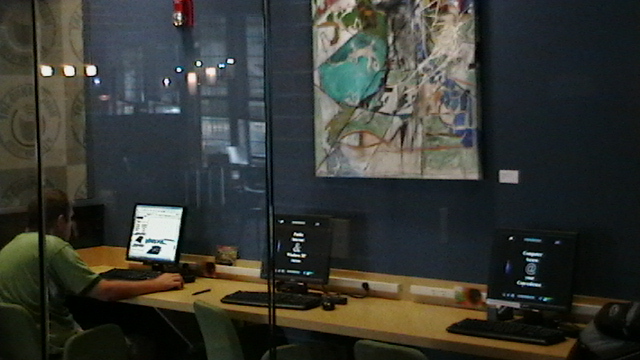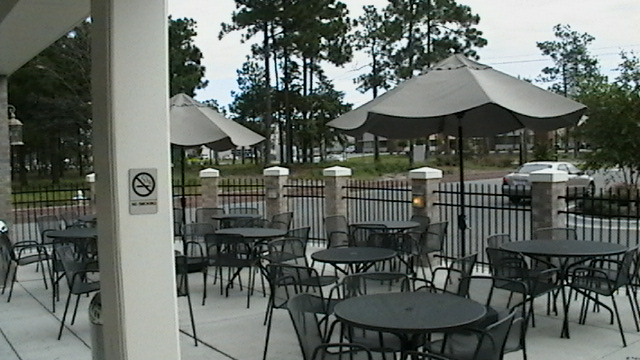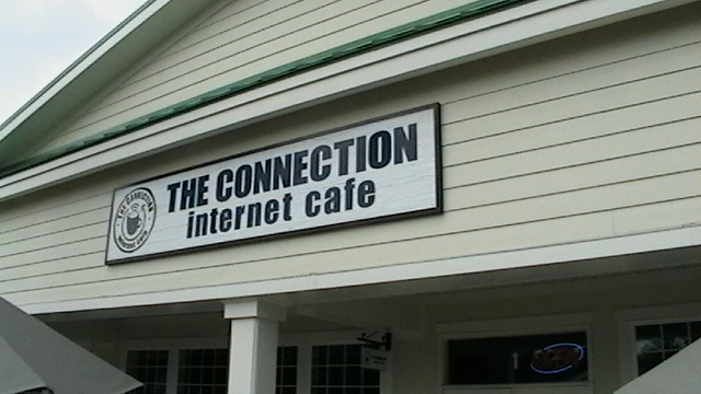 room, The store has a super location - end cap in a strip mall. They advertise in the local tourist material and they are very close to the University of North Carolina, Wilmington. The staff are well trained and you know they are happy working at The Connection. Theresa was very helpful, and I'm sure touched base with someone, which is a sign of good and broad training, before granting us permission to take pictures. She is gracious and makes a good double espresso - lots of crema, not too hot and easily consumed in a gulp. Jenell greeted us as we entered the cafe and took our orders professionally and with a big smile. It was contagious and set the tone for our whole visit. We had lunch. The store is closed on Sunday and apparently some of the staff attend Sunday service together. Good team. And it shows. I've always admired Chic Filet for adopting Sunday as a day of rest for the staff and so too now The Connection Internet Cafe. Here's the outside cafe with plenty of tables and a nice fence