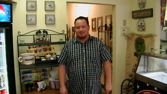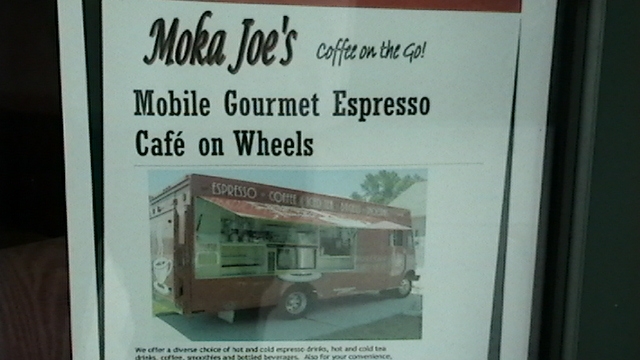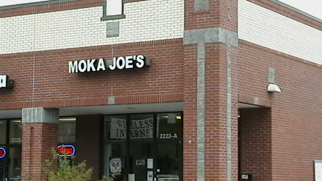 Click a picture for a larger image. | Moka Joe's: Dan and Colleen Kinkade, First Riders to Join the Ride for Independent Coffee StoresI'm really excited because Dan and his wife are going to ride tomorrow on the Ride for Independent Coffee Houses. I just received the much anticipated T-shirts and I plan to give one to Dan. This is great, and perhaps the first step toward broadening the Ride for Independent Coffee Houses. This is a family operation and second owners. Dan Kinkade and his wife, Colleen, and daughter and son-in-operate Moka Jo's in a very good location in a food store shopping center. And a Johnson Drugs.